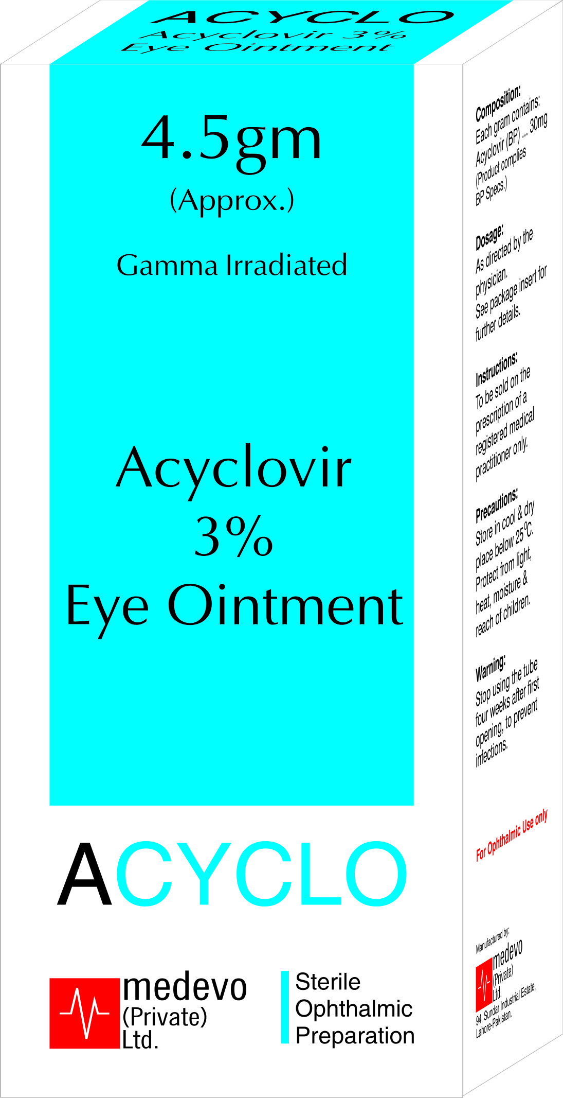 ACYCLO 3% sterile ophthalmic ointment is available in 4.5gm supplied in a plastic aluminum tube.